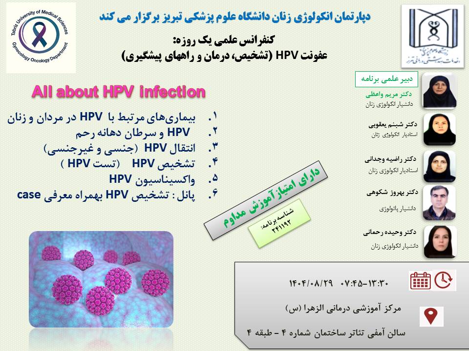دپارتمان گروه انکولوژی زنان کنفرانس علمی یکروزه تحت عنوان عفونت HPV....