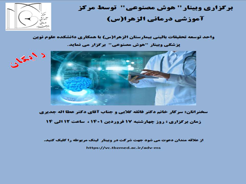 واحد توسعه تحقیقات بالینی بیمارستان الزهرا(س) با همکاری دانشکده علوم نوین پزشکی |
