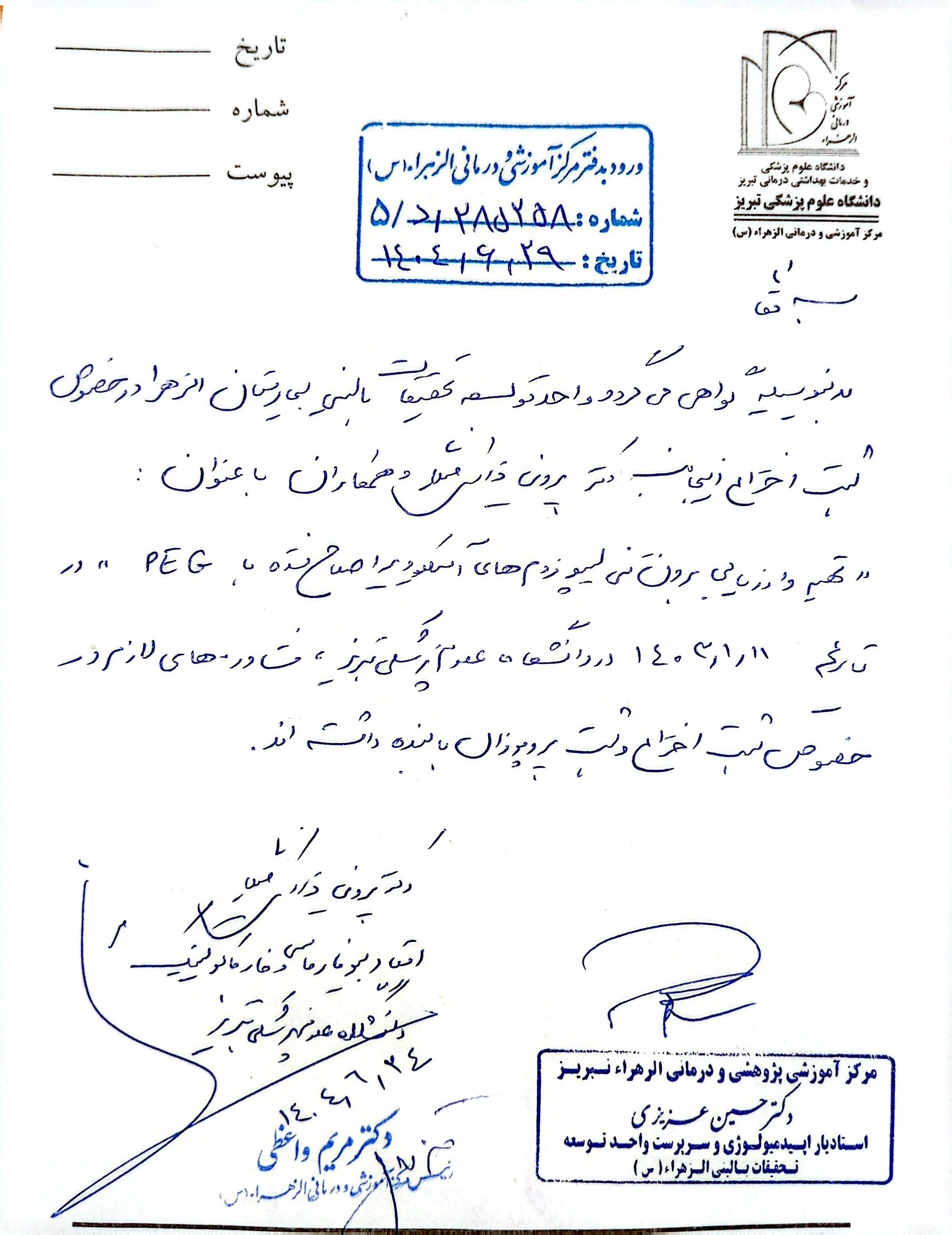 | تهیه و ارزیابی برون تنی لیپوزوم های آسیکلوویر اصلاح شده با PEG | 110818 | 140150140003001690 | 1403/1/11 | دکتر پروین ذاکری |
